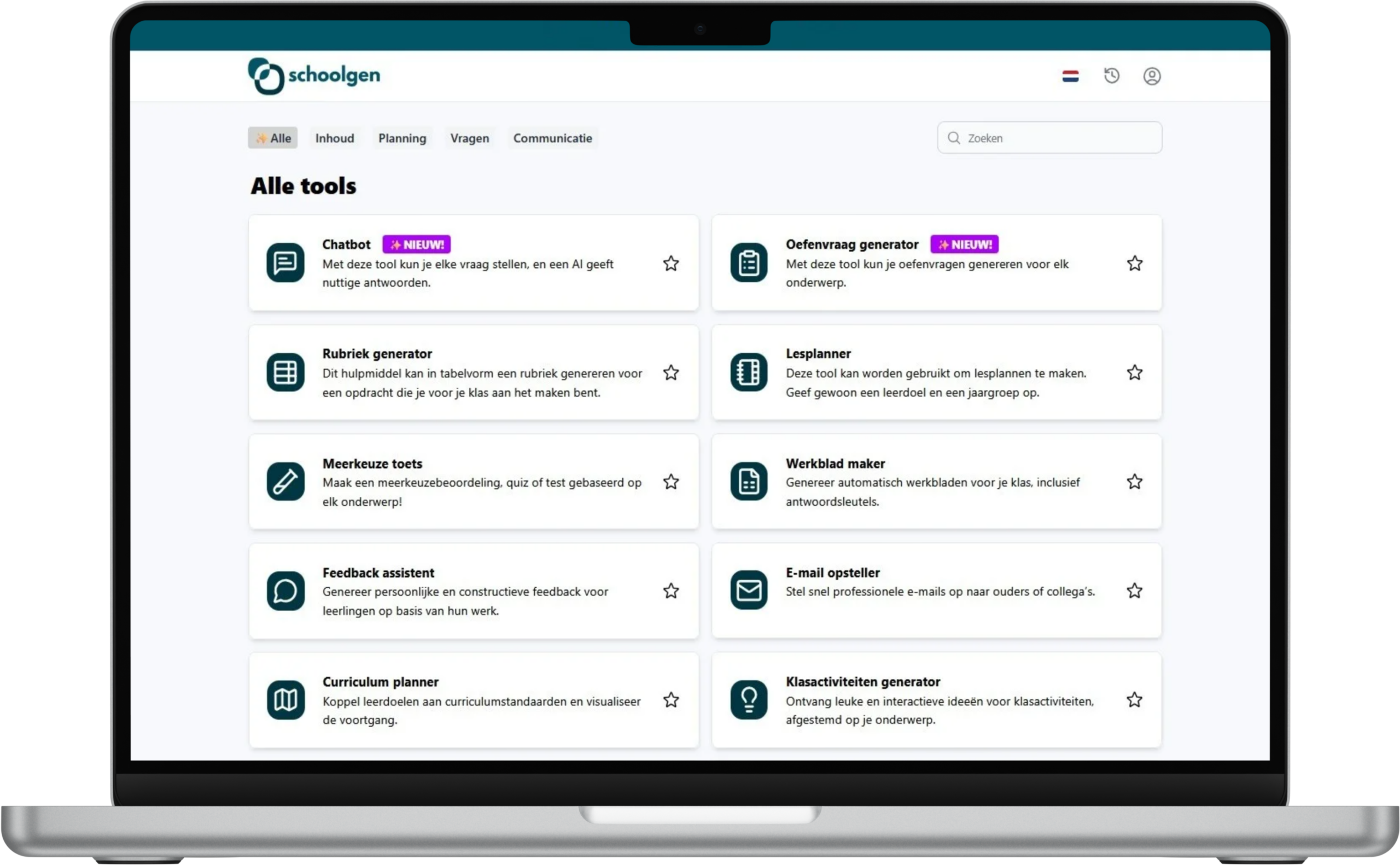 Schoolgen is ons eigen AI-platform waarmee we AI-tools aanbieden voor docenten en studenten! Ons platform is gebouwd voor het onderwijs met een sterke focus op veiligheid, privacy, kritisch denken en digitale geletterdheid. Hiermee willen we het onderwijs een beter alternatief bieden, waarbij de nadruk ligt op het verantwoord gebruik van AI-toepassingen.